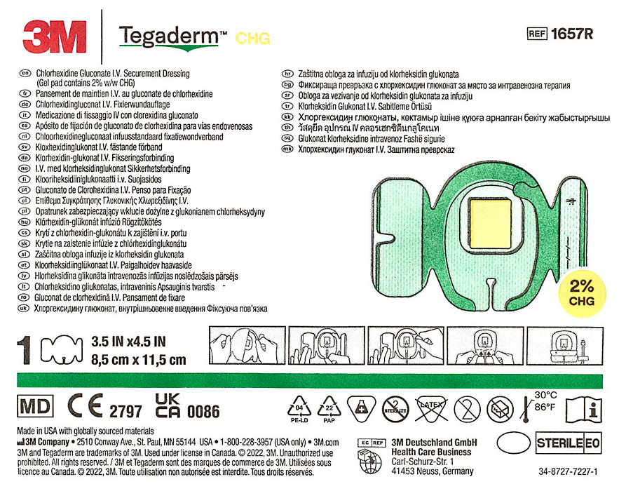 - Ett specialt portförband Tegaderm CHG5Antibakteriellt skydd som enl. studier ger ett yttre skydd och reducerar bakteriell kolonisering med ≥60%. med en gelplatta med klorhexidinglukonat. NYHET 250804